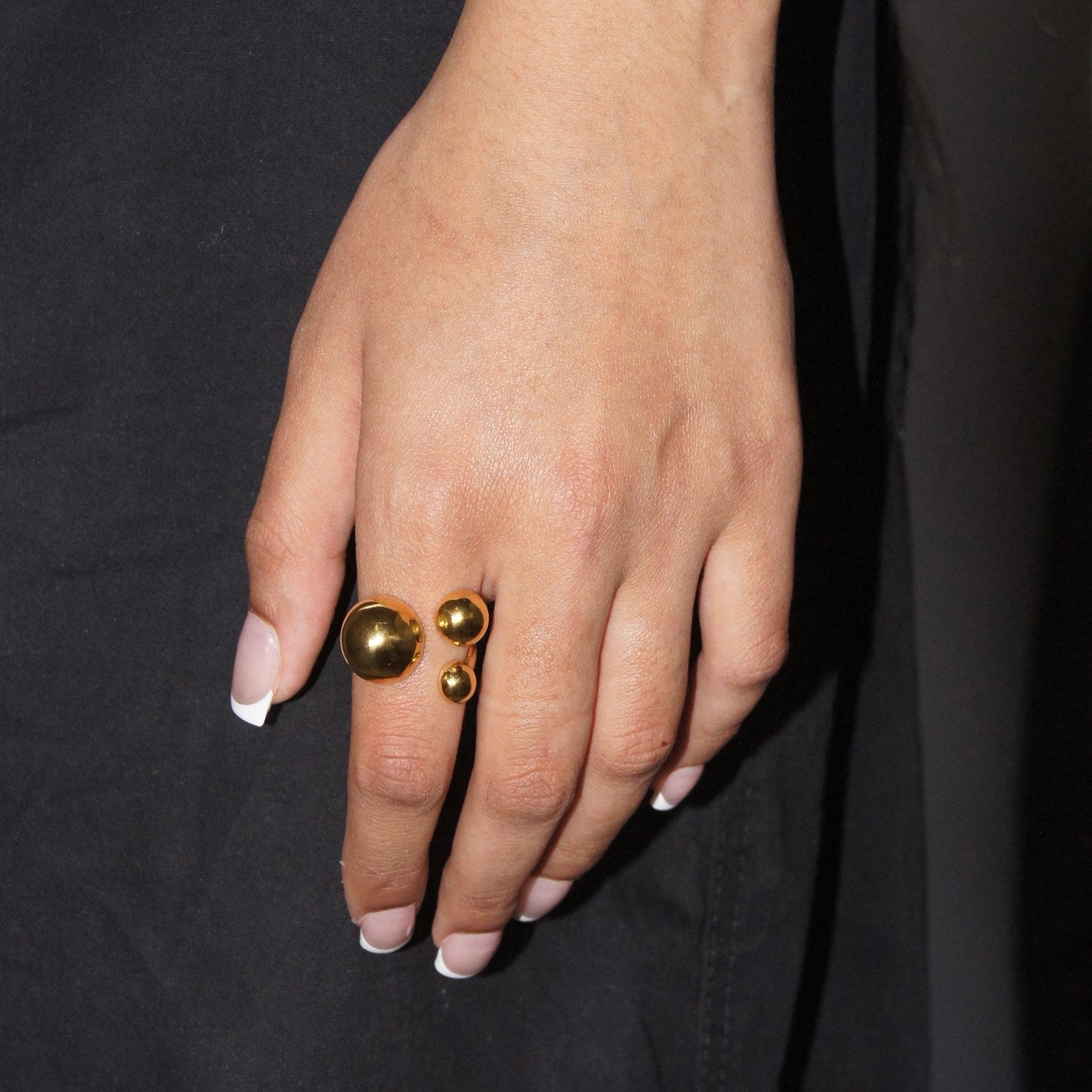 You didn’t need another ring… until this one. The 3 Ball Ring brings bold energy without trying too hard—clean, and sculptural. Wear it solo or stack it up, it holds its own either way.