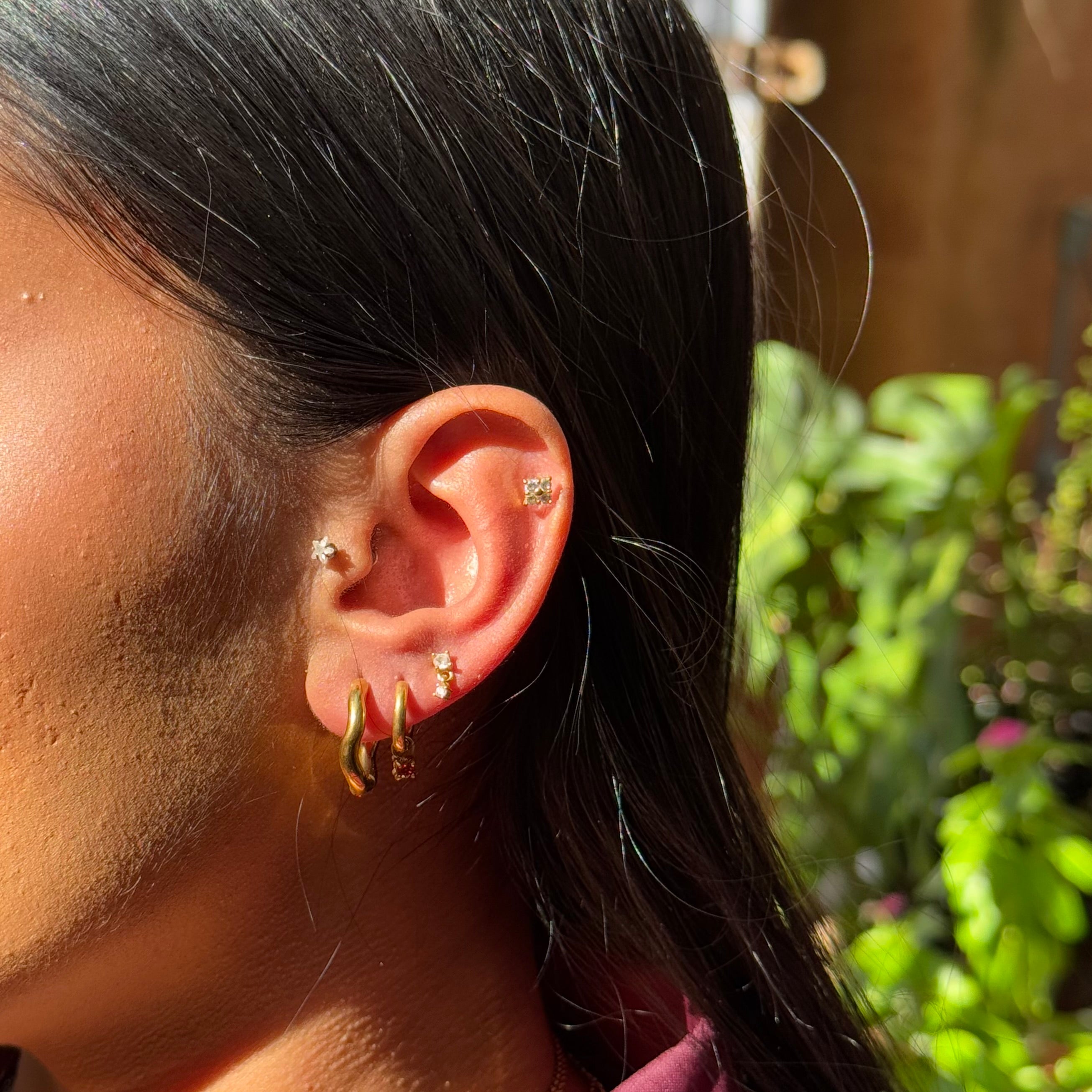 Small Red Stone Huggies