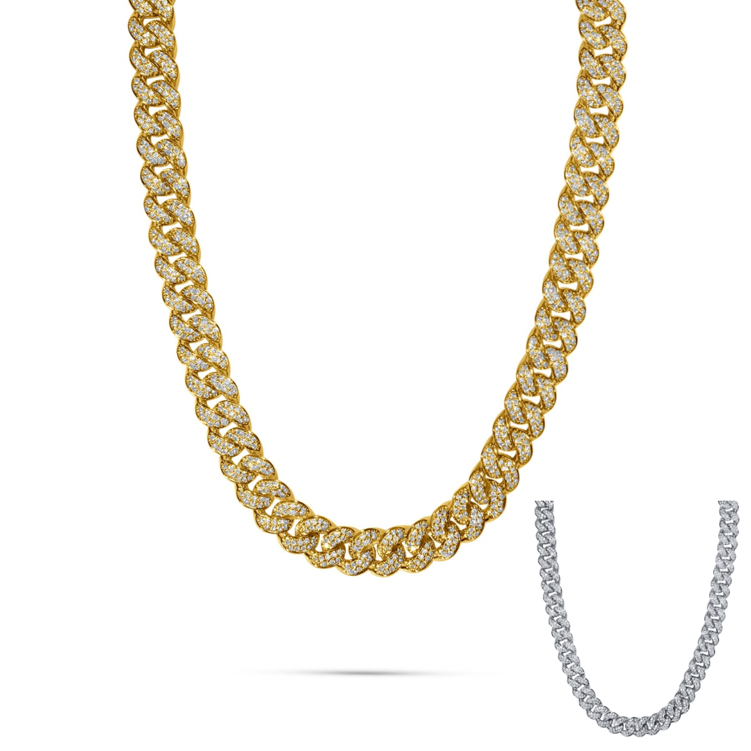 This isn’t your average chain — it’s a full pavé cuban link that catches light from every angle. Icy AF with that weighty, premium feel. Just a cold, clean piece that turns heads without screaming for it.